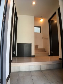 引戸の玄関ドアを開けると広々とした玄関がお出迎え。