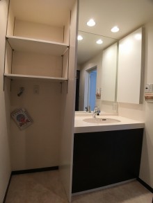 洗面の小物はサイドの壁面収納をご利用ください!!
