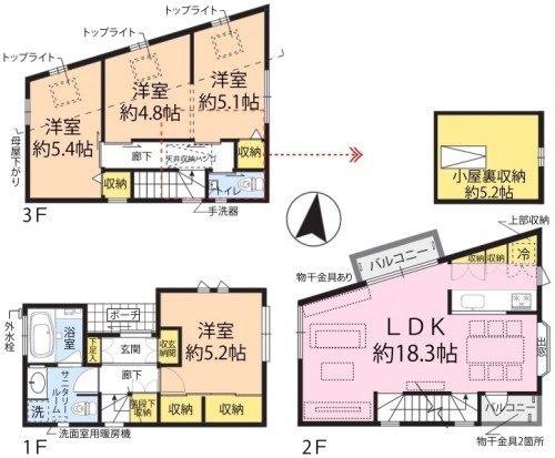 さらに3階上には約5.2帖の広々とした小屋裏収納もついており、季節ものや普段使わない荷物が充分に収納できる頼りになる大きさですよ!!!