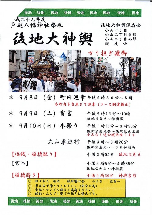 なんせ今年は10年ぶりに後地大神輿が台車にて各町内を巡幸させて頂きますよー。!(^^)!