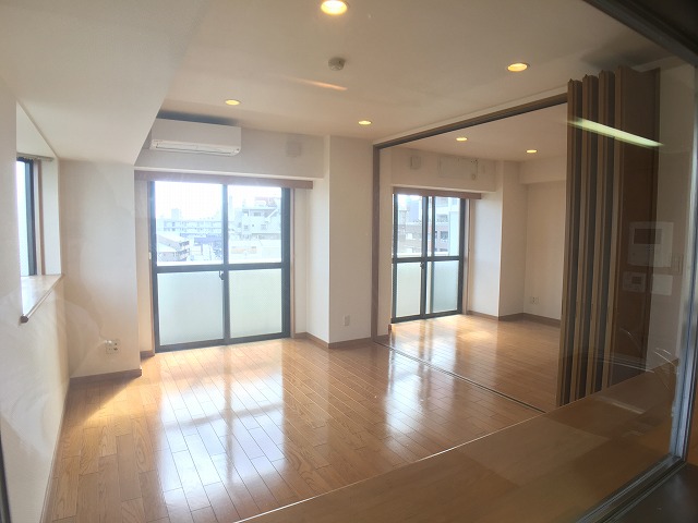 リビングの隣にある洋室との間は、壁ではなくアコーディオンドアになっていますので、開け放てばひろ~い空間になります。