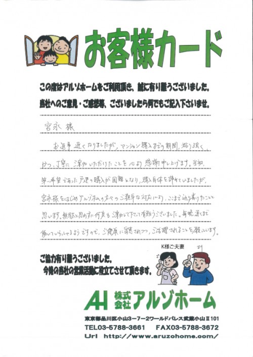 弊社にてマンションを購入していただいたお客様から嬉しい嬉しいお声をいただきました^^