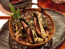 こちらは、名前に魅かれて注文した、さんまの梅と大場の海苔巻き上げと高野豆腐の揚げ出し。