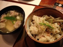 栗と山菜きのこのまぜごはん、と、塩もつ汁!!!